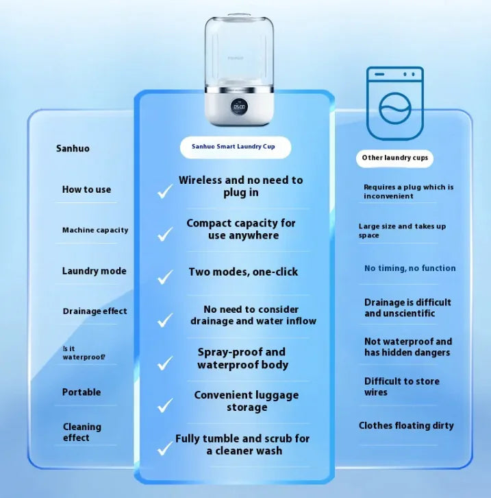 Keep your essentials clean anywhere with the Mini Rechargeable Washing Machine—designed for underwear, socks, and small garments. Compact and USB-rechargeable, this portable travel washer is perfect for business trips, dorms, and vacations. Easy to use and eco-friendly, it brings convenient, on-the-go hygiene to your fingertips—no full-size washer needed.
